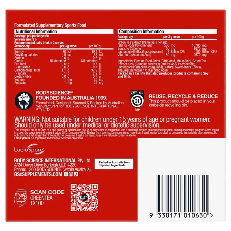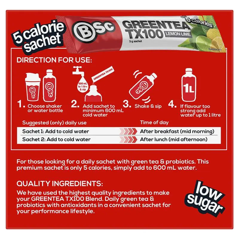BSc Green Tea TX100 Lemon Lime 60 x 3g Serve