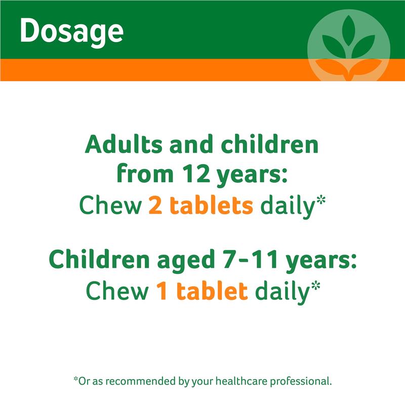 每日咀嚼 1 片,或遵健康保健專業人士建議