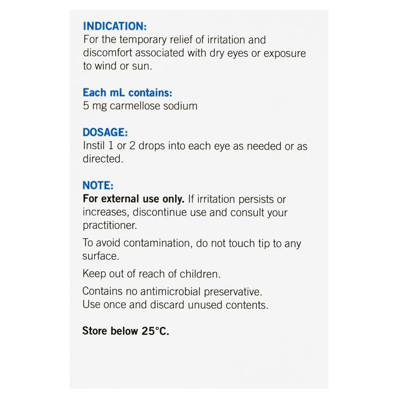 根據需要經常滴入 1 或 2 滴眼睛,並丟棄未使用的內容物。存儲說明