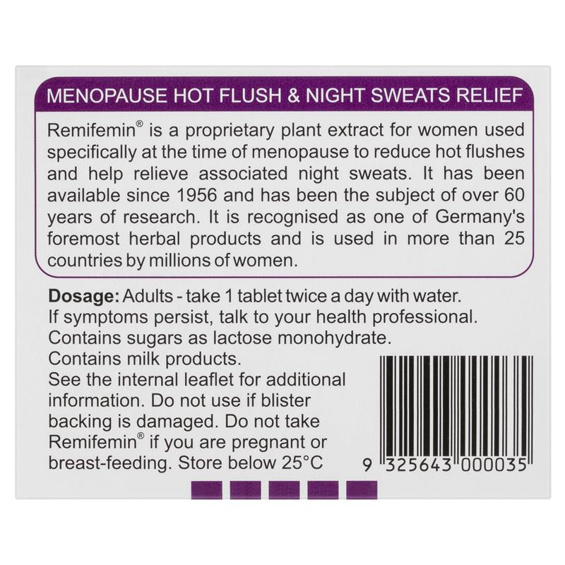 • 有助於減少和緩解與更年期相關的潮熱和盜汗。• Remifemin 不含雌激素,含有天然植物萃取物,有助於減少和緩解與更年期相關的潮熱和盜汗。