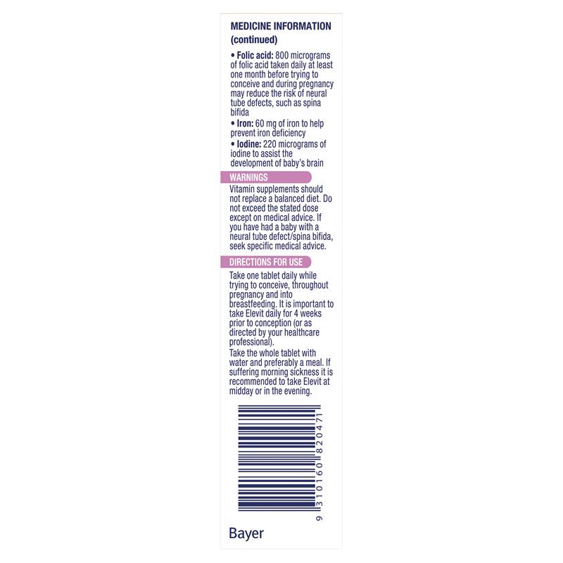 適合族群:適合嘗試懷孕、整個懷孕期間和哺乳期的女性。受孕前 4 週內每天服用愛樂維(Elevit)非常重要(或按照您的醫療保健專業人士的指示)