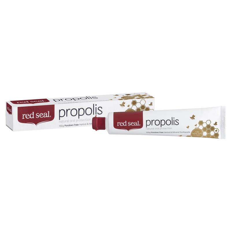 Red Seal 蜂膠草本和礦物牙膏是一種不含對羥基苯甲酸酯的牙膏,可為健康的牙齦提供天然的口腔保護。